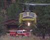 A Bell 212 helicopter works with a 300 gallon bucket. Structure protection
